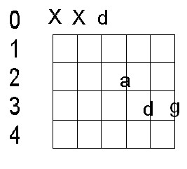 Most of the chords found in the open position can be moved up the fret board to become new chords. The following are examples of what is possible with the D or Dm chords. To read these diagrams the vertical lines are strings and the horizontal lines are frets. The left most string is the thickest string.