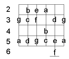 This means that by knowing this Major Scale shape you can play something over every song no matter what Major Scale (Key) it uses. The following table shows which fret to place your 2nd finger to play the corresponding Scale. We will start at fret 3 because that is the first place that you can play this shape in its entirety:-