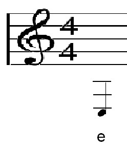 This is the open note (no finger on frets) of the thickest string. This also tells us that the E on the stave is the lowest sounding note the guitar can produce, with normal tuning.